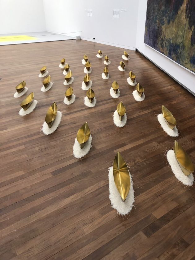 Darüber hinaus werden auch einige Werke aus der asiatischen Kunst gezeigt, die für Laibs Arbeit ebenfalls prägend waren – vor allem aus Indien. Besonders hervorzuheben ist eine bedeutende Leihgabe aus dem Museum Rietberg: eine Marmorstatue aus der indischen Jain-Tradition, deren Philosophie der Gewaltlosigkeit Laib tief beeindruckt. Die Figur zeigt den Jina Rishabha, den ersten von 24 heiligen Lehrern der Jaina-Lehre, und stammt ursprünglich aus einem rituell-religiösen architektonischen Kontext.