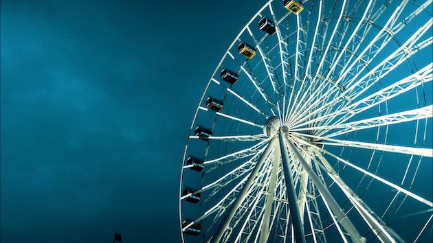 Das Riesenrad war immer schon Ausdruck für das Originelle, Kühne und Einzigartige. Die Größe und die Superlative stehen im Zentrum der Berichterstattung. So wurden das „London Eye“ oder das berühmte Riesenrad am Wiener Prater für ewig zum Wahrzeichen der Städte, die sie überblicken wollen. In München ist das sogenannte „Umadum“ auf bestem Wege, zum neuen Wahrzeichen Münchens zu werden. Der Name dieses knapp 80 Meter hohen Münchner Fahrgeschäfts verweist gleichzeitig auf seine Nähe zum Volkstümlichen und zur Folkore. Riesenräder verkörpern inmitten der wilden, immer schneller und halsbrecherischer werdenden Fahrgeschäfte auch etwas wie Gemütlichkeit, eine Sehnsucht nach Langsamkeit und Entschleunigung. Diese Spannung zwischen hochmodern und nostalgisch ist Teil der Faszination.