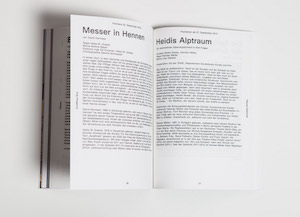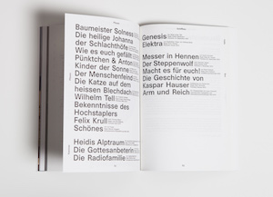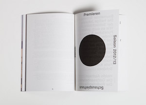 Jürg Schaffhuser: Die Spielzeitbü- cher informieren über die kommende Spielzeit. Sie sind aber noch viel mehr als das: Sie machen Visionen von Intendanten und ihren Dramaturgen-Teams Besucherinnen und Besuchern sichtbar. Für mich persönlich ist eine Saisonvorschau gelungen, wenn mich die Neugierde packt. Wenn ich auf Texte treffe, die mich inspirieren. Und wenn die Texte schön gesetzt sind. Das typografische Handwerk sollte zum Repertoire gehören. Der zentrale Kick einer Saisonvorschau findet sich für mich aber in der Bildstrecke. Darin pocht der Zeitgeist. Toll gemachte Fotostrecken können mich begeistern. Zum Beispiel diejenige von Jürgen Teller für die Schaubühne Berlin. Oder die Arbeit von Cornel Windlin, bei der er die radikale Verknüpfung von monochromen Bildern mit dem runden schwarzen Punkt ze- lebrierte. Damit wurde sein Spielzeitbuch für das Schauspielhaus Zürich in der Saison 2009/10 zum Kultobjekt.
